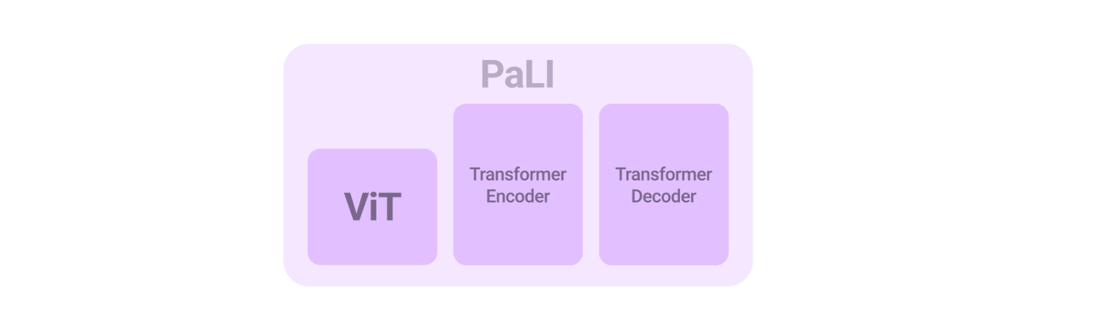 The model is trained in JAX with Flax using the open-sourced T5X and Flaxformer framework. For the visual component, we introduce and train a large ViT architecture, named ViT-e, with 4B parameters using the open-sourced BigVision framework. ViT-e follows the same recipe as the ViT-G architecture (which has 2B parameters). For the language component, we concatenate the dense token embeddings with the patch embeddings produced by the visual component, together as the input to the multimodal encoder-decoder, which is initialized from mT5-XXL. During the training of PaLI, the weights of this visual component are frozen, and only the weights of the multimodal encoder-decoder are updated.