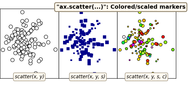 # `imshow`, `pcolor`, `pcolormesh`, `scatter`, and any other Matplotlib plotting methods that map a range of data values onto a colormap will return artists that are instances of `ScalarMappable.` In practice, what that means is a) you can display a colorbar for them, and b) they share several keyword arguments.