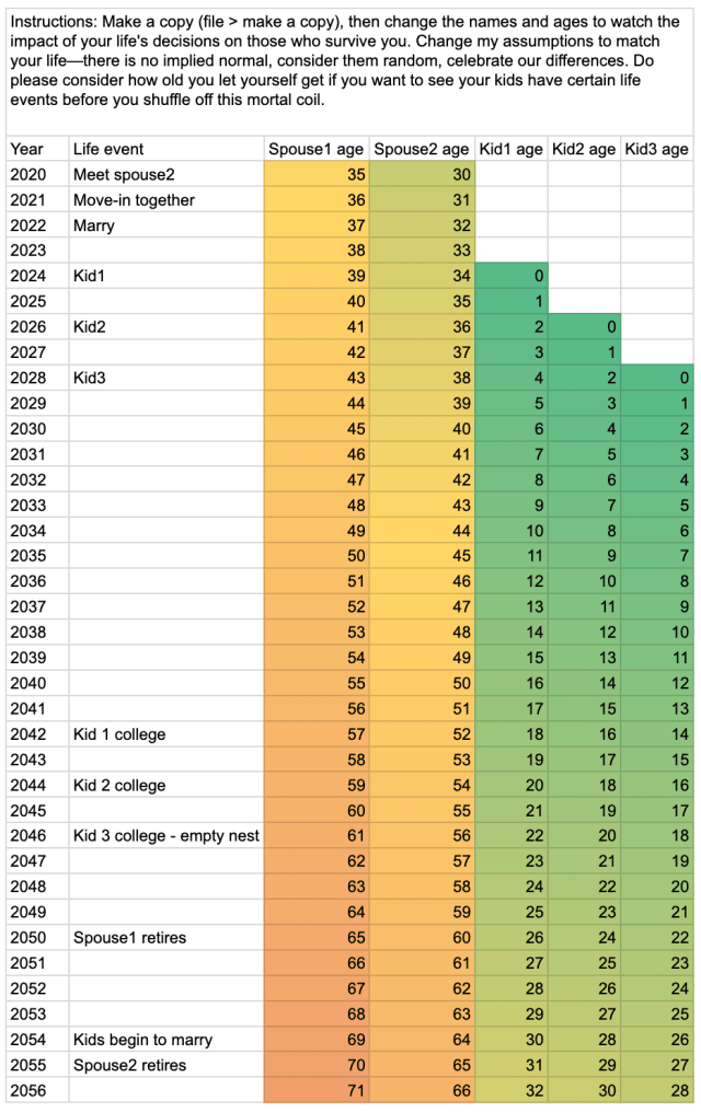 Do please consider how old you let yourself get if you want to see your kids have certain life events before you shuffle off this mortal coil.