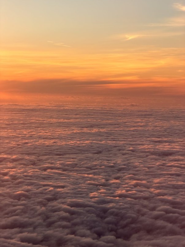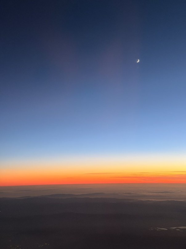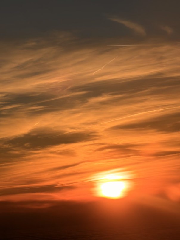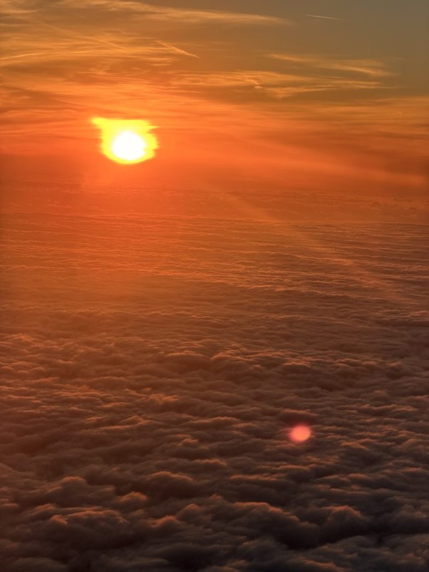 When I can, I always try to time my flights for sunrise or sunset. The astounding beauty of nature never fails to amaze. The default nowadays is shades down; everyone is watching something, but sometimes it’s hard to match what you see out the window. And realize that only a small portion of humanity has ever been able to see these vistas from such an elevation.