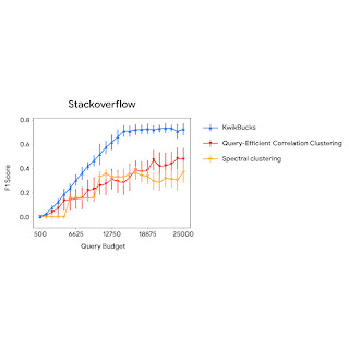 Motivated by this, in “KwikBucks: Correlation Clustering with Cheap-Weak and Expensive-Strong Signals”, presented at ICLR 2023, we describe a novel clustering algorithm that effectively combines the scalability benefits from embedding models and the quality from CA models. This graph clustering algorithm has query access to both the CA model and the embedding model, however, we apply a budget on the number of queries made to the CA model. This algorithm uses the CA model to answer edge queries, and benefits from unlimited access to similarity scores from the embedding model. We describe how this proposed setting bridges algorithm design and practical considerations, and can be applied to other clustering problems with similar available scoring functions, such as clustering problems on images and media. We demonstrate how this algorithm yields high-quality clusters with almost a linear number of query calls to the CA model. We have also open-sourced the data used in our experiments.