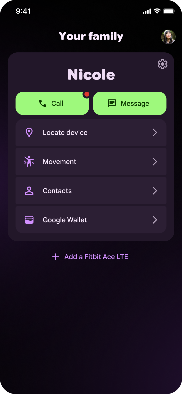 Notifications are sent to your phone for incoming calls, missed calls, or messages from your child’s Fitbit Ace LTE.