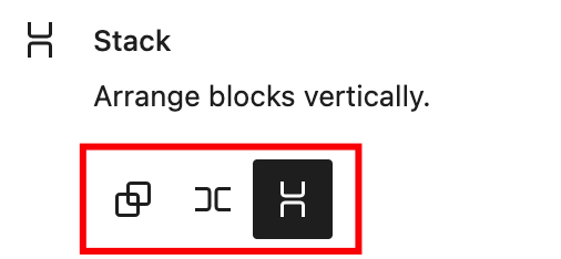 Stack block is one of the container blocks that can be used to nest other blocks vertically. As a container block, it’s possible to transform a Stack block into a Group or Row block without changing the content of the block.