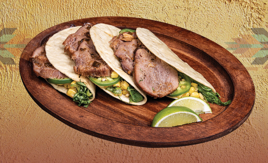 Fresh romaine lettuce leaves filled with wok-grilled ground pork and shrimp, fried rice noodles, pickled carrots, sliced jalapeño cilantro and garnished with greens scallions.