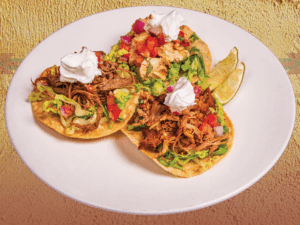 Three De Leon’s fresh handmade tortillas fried golden brown. Build it your way with the choice of Beef Birria, Chicken Verde, or Pork Carnitas. Top it with your choice of fixings.