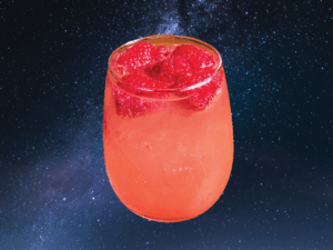 Light, fizzy, and full of flavor. This refreshing mix of raspberry, a splash of soda, and a hit of sparkling wine is served over ice and topped with fresh raspberries.