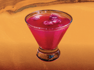 A vibrant mix of muddled lime and pomegranate, vodka, pome-liqueur shaken and served in a chilled martini glass.