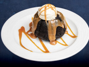Bourbon mixed with chocolate gives rich warm comforting depth to this moist chocolate cake, topped with bourbon caramel sauce. We complete the experience with vanilla bean ice cream.