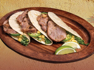 Beef tongue slowly braised and thinly sliced with romaine, elote, and fresh jalapeño.