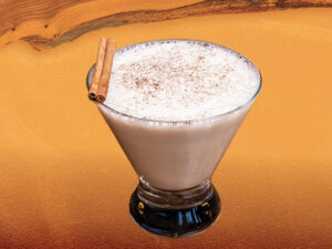 A creamy nutty twist on a classic cocktail. This cocktail brings winter to the table with notes of almond and vanilla. Garnished with a dash of cinnamon.