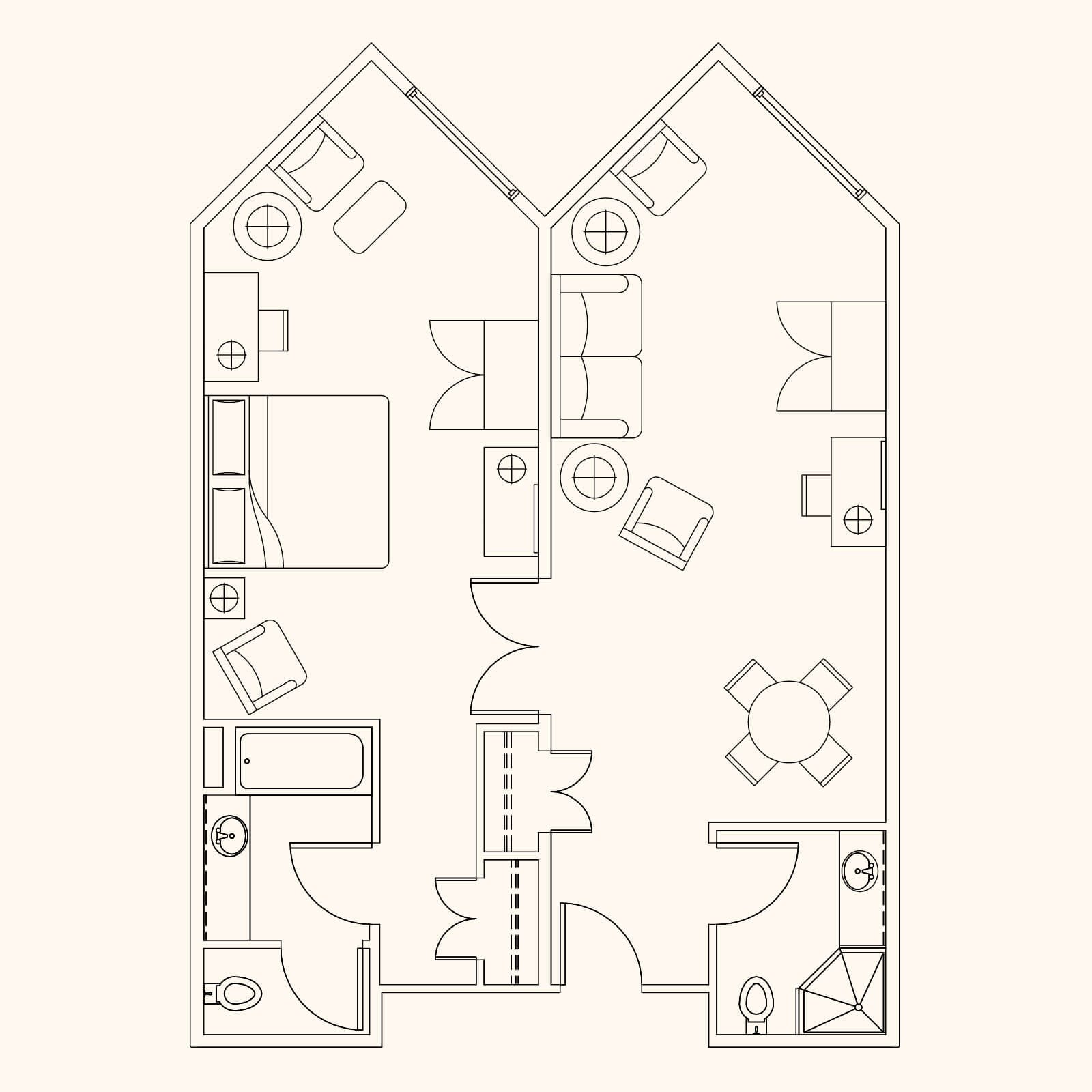 Our VIP Suite is sophisticated and spacious, furnished with a lavish, feather-top king bed, full dresser, two televisions, a comfortable sitting area, two bathrooms and beautiful French doors.