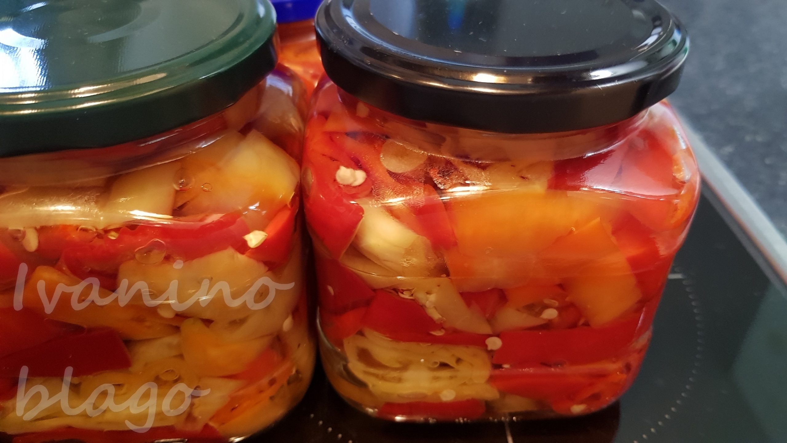 Druga varijanta ovih paprika je da ih odmah nakon što ste ih ocedili posle soljenja stavite u teglu, nalijete zejtinom i zatvorite. Ako imate klik-klak poklopce, koristite njih. Ja sam u ovoj varijanti pasterizovala. Ovako napravljene paprike nisu kisele, i za mene su ukusnije.