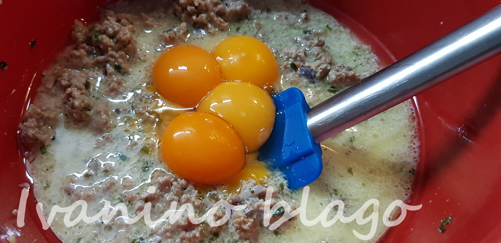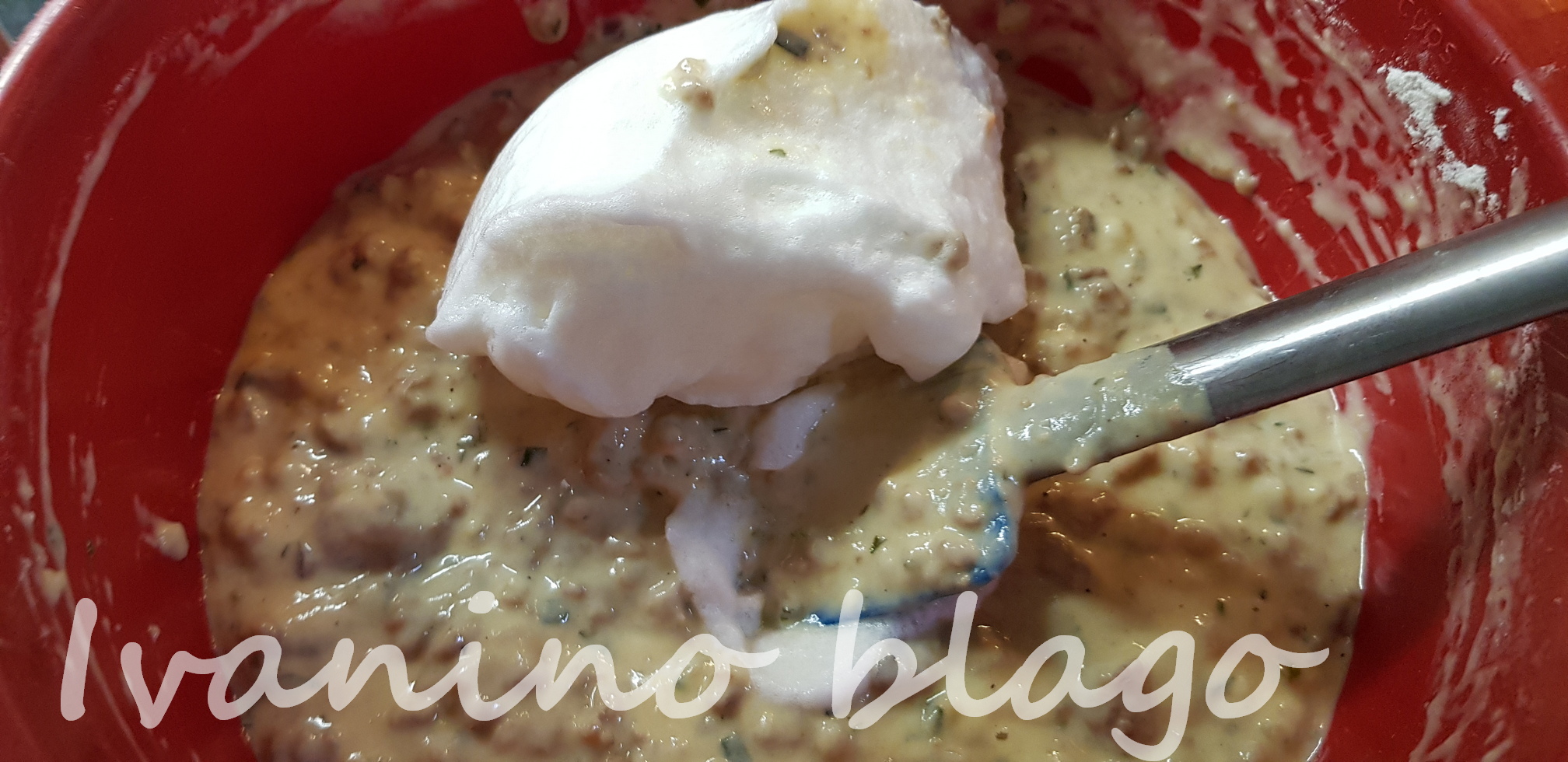Odvojeno umutiti belanca pa polako dodati u smesu sa mesom, kao kad pravite smesu za patišpanj.