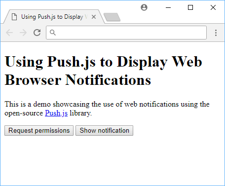 Now we are set up to use the Push.js library in our code. According to the library's docs, we can request permissions using
