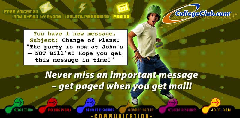 Back in California, Bennett Fisher invites John to join CollegeClub under the title “community manager” — the go-to person for building buzz and keeping students plugged in. John quickly discovers that CollegeClub isn’t just another website: it’s one of the first large-scale online hangouts built just for college students. Think of it as a mash-up of a campus quad, a group chat, and an early prototype of Facebook. Members can send private messages, drop voice mails, and dive into lively message boards like The Arts, Politics, Pre-College, Health & Fitness, and Fun & Games. It’s the dawn of online community life — and John’s right at the center of it.